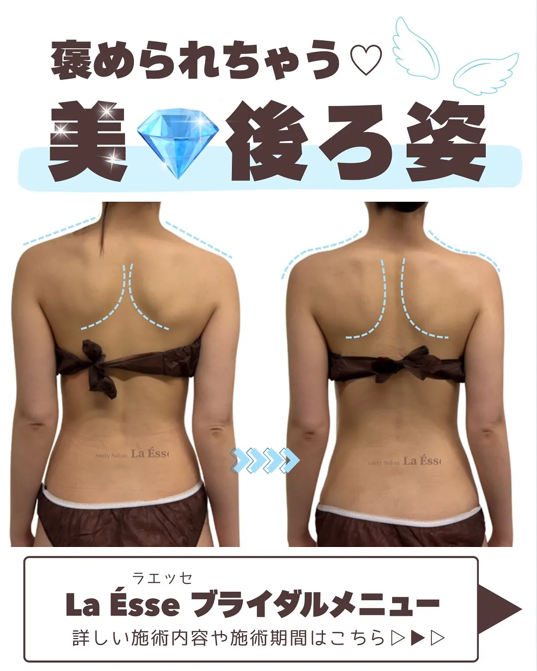 背中も肩甲骨も美しくドレス映え👰🏻♀️ 花嫁様必見!!💍 背中も肩甲骨も美しくドレス映え👰🏻♀️花嫁様必見!!💍こちらのお客様は、挙式2ヶ月前に来てくださったお客様です🥰インナーケアも頑張ってくださり挙式までに4回ご来店いただきました😌元々細身ですが、肩…