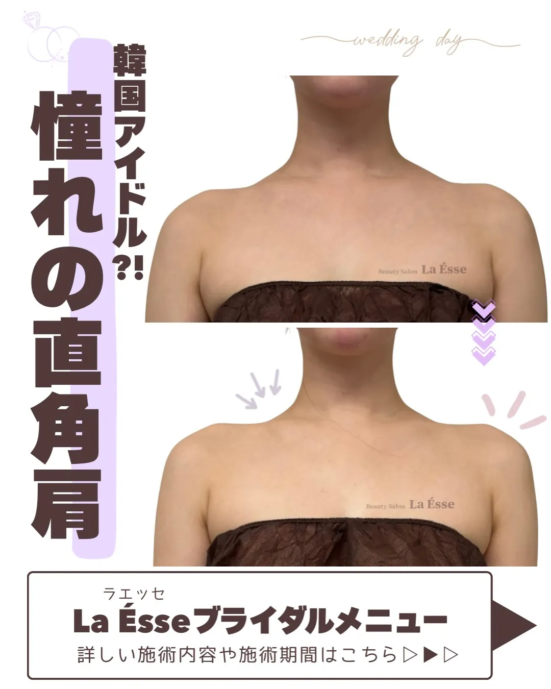 憧れの直角肩!!美デコルテでドレス映え間違いなし!💍 憧れの直角肩!!美デコルテでドレス映え間違いなし!💍ブライダルのお客様です💖元々細身ですが、上半身を引き締めデコルテをきれいに整え、肩のモリっと感を解消!華奢感UPでさらに美しくなられました🌟…